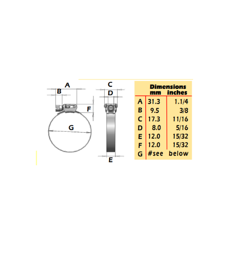 consists of a 400 series stainless steel band, with zinc electroplated mild steel housing and slotted 8mm hex-head case-hardened screw. It is ideally suited for Automotive applications and general environments.